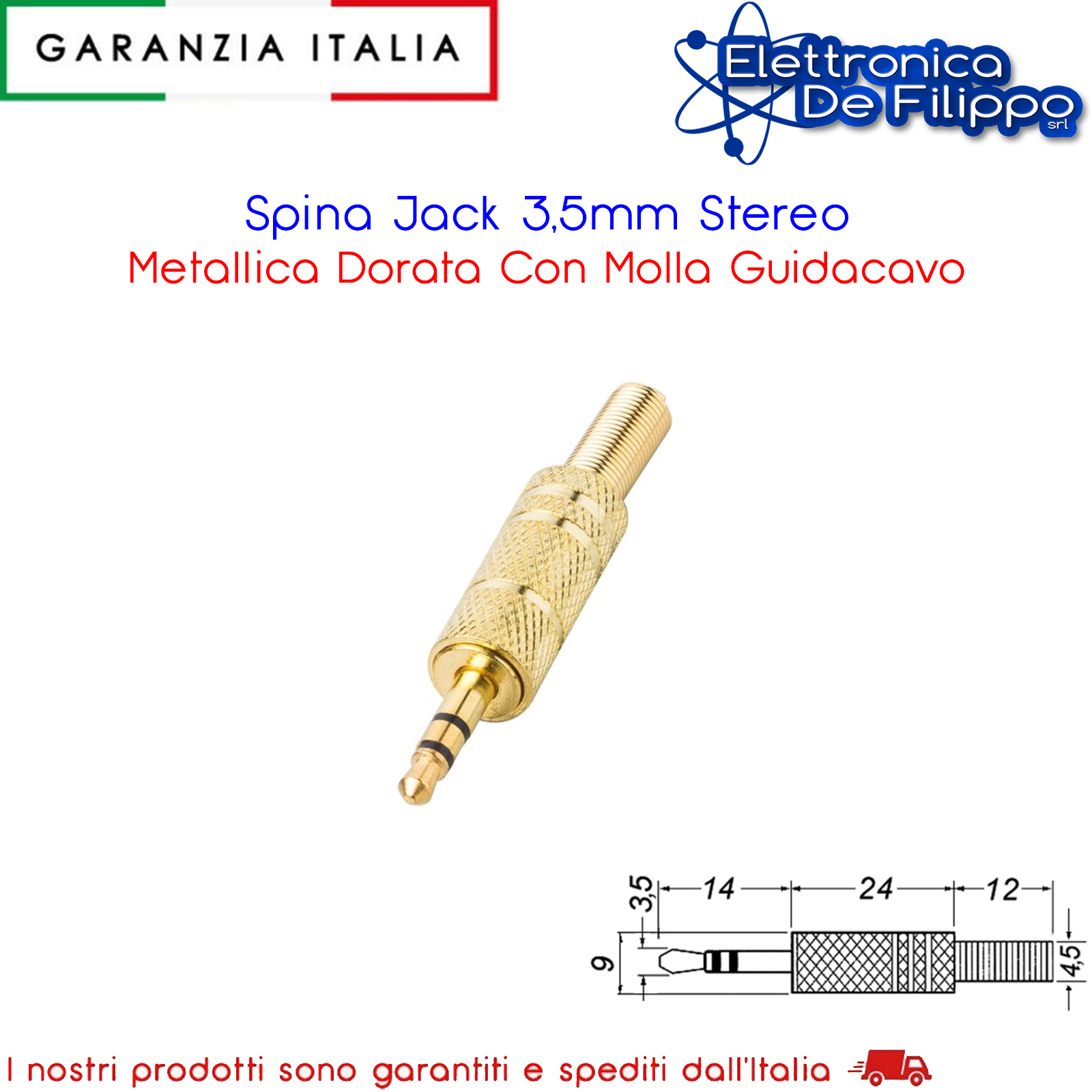 Spina Jack 3,5mm Stereo Metallica Dorata Con Molla Guidacavo