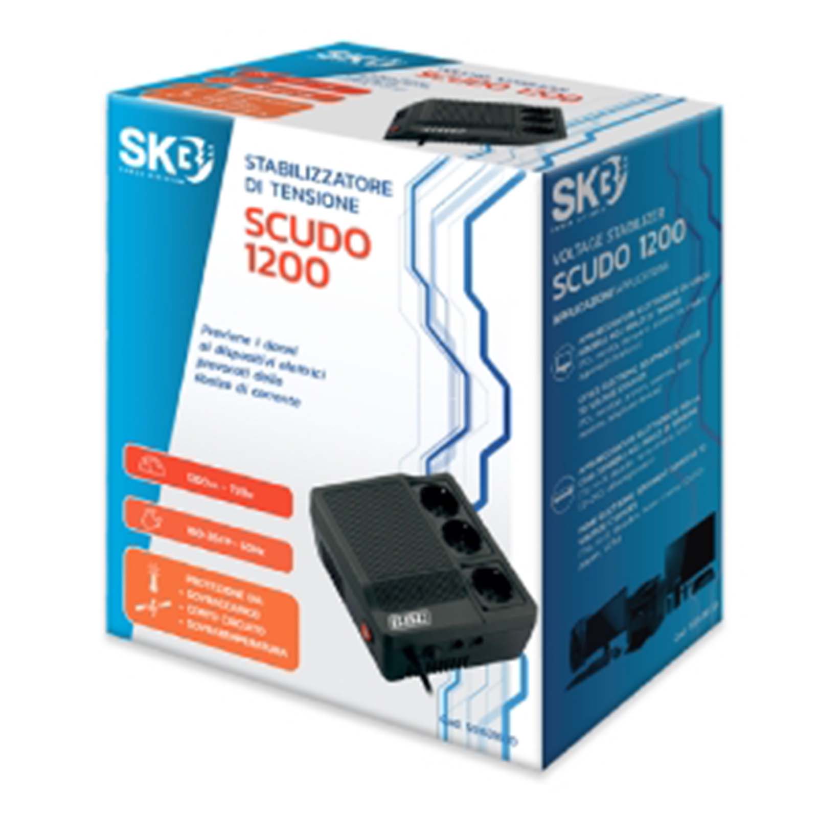 La rete elettrica nazionale spesso, e soprattutto in alcune zone della Penisola, non fornisce corrente di "buona qualità". Le apparecchiature ad alto contenuto tecnologico (e di elevato valore) come televisori HD di ultima generazione e Personal Computer, sono estremamente sensibili agli sbalzi di tensione, anche a quelli di non grande portata. Uno stabilizzatore di tensione previene i danni che potrebbero derivare da sovra e sotto tensioni dovute a sbalzi di tensione elettrica sulla rete domestica. Lo "Scudo", AVR da 1200VA (720W max.) è in grado di proteggere i vostri apparati elettronici domestici più preziosi da sbalzi di tensione compresi tra 180 e 264V.