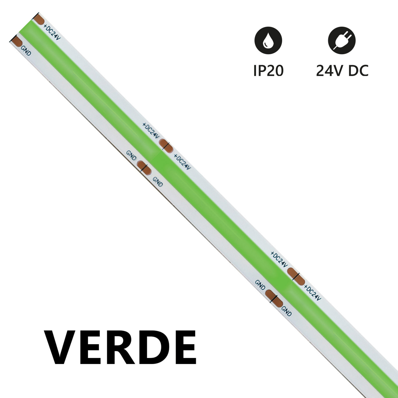 Striscia a LED COB 5 Metri - Verde - 24V - 15W/m