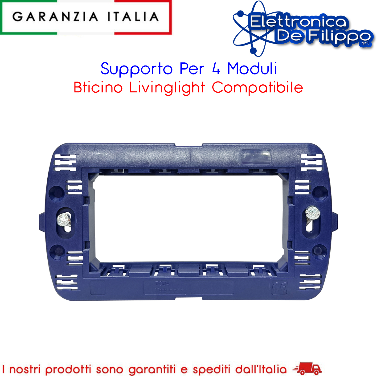 Supporto per placche quadre Livinglight LNA4804...e Living International L4804... - fissaggio con viti - 4 moduli
