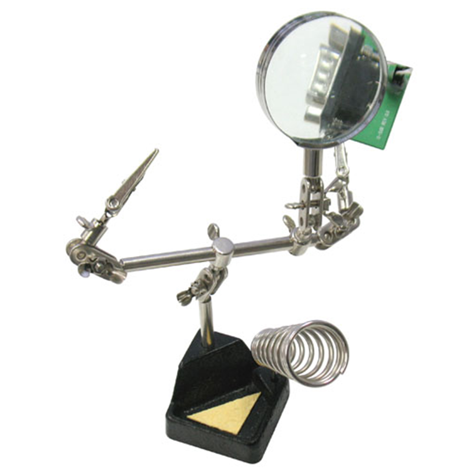 Supporto snodabile per saldatura con lente e porta saldatore. Strumento ideale per hobbisti e laboratori. Pratico e robusto supporto snodabile dotato di: