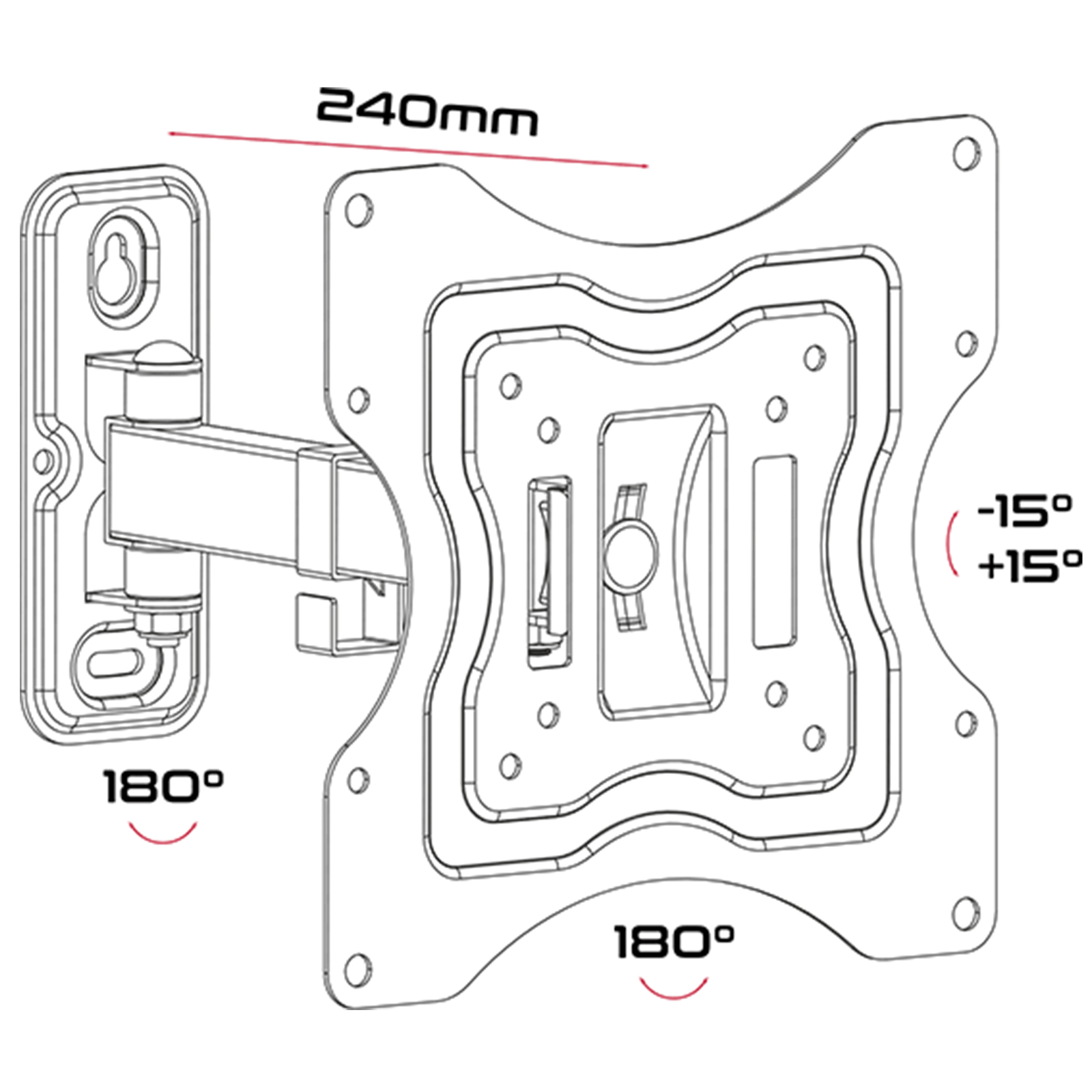 Supporto universale per FLAT-TV 23"-42" - Kg 15 - 1 bracci - 2 snodi