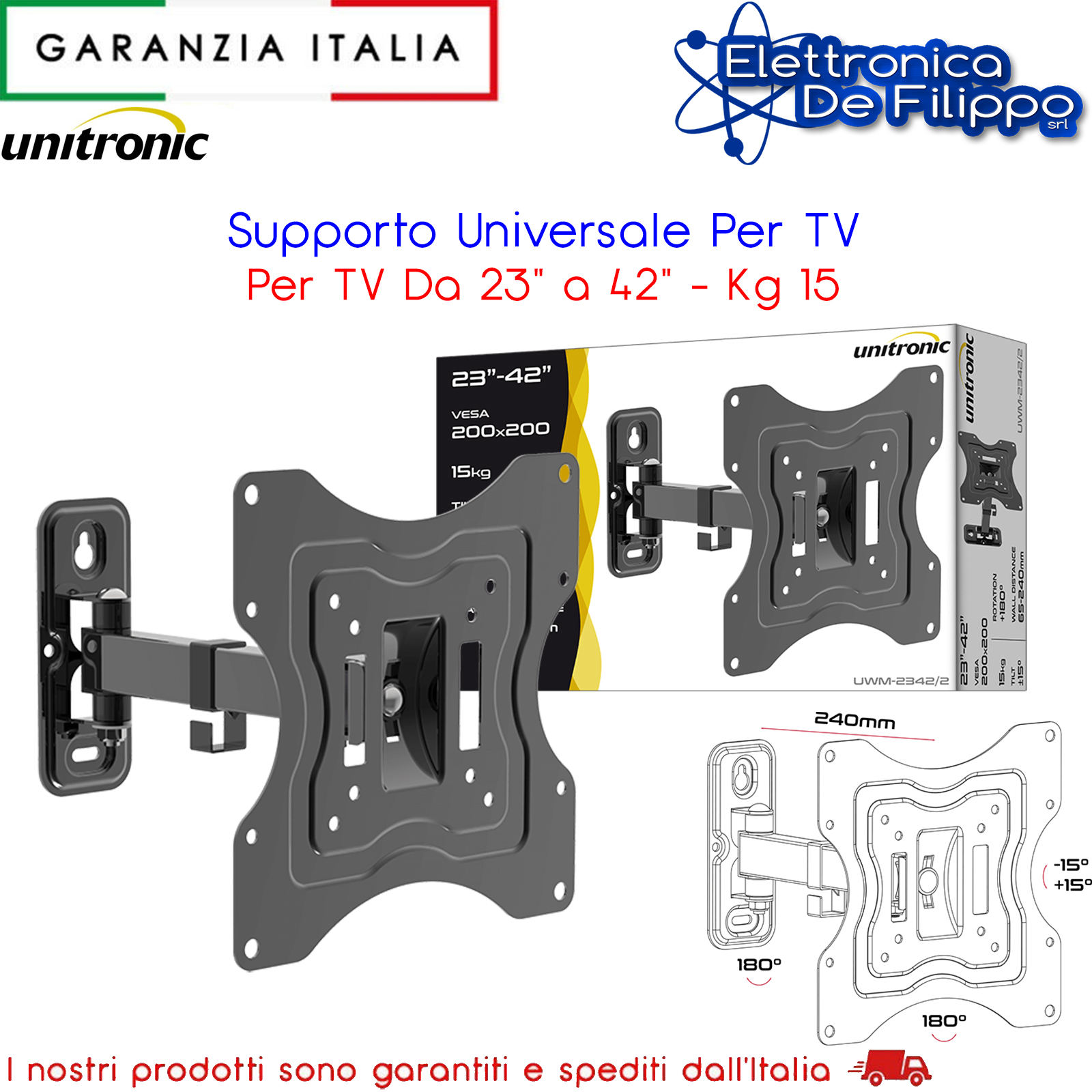 Supporto universale per FLAT-TV 23"-42" - Kg 15 - 1 bracci - 2 snodi