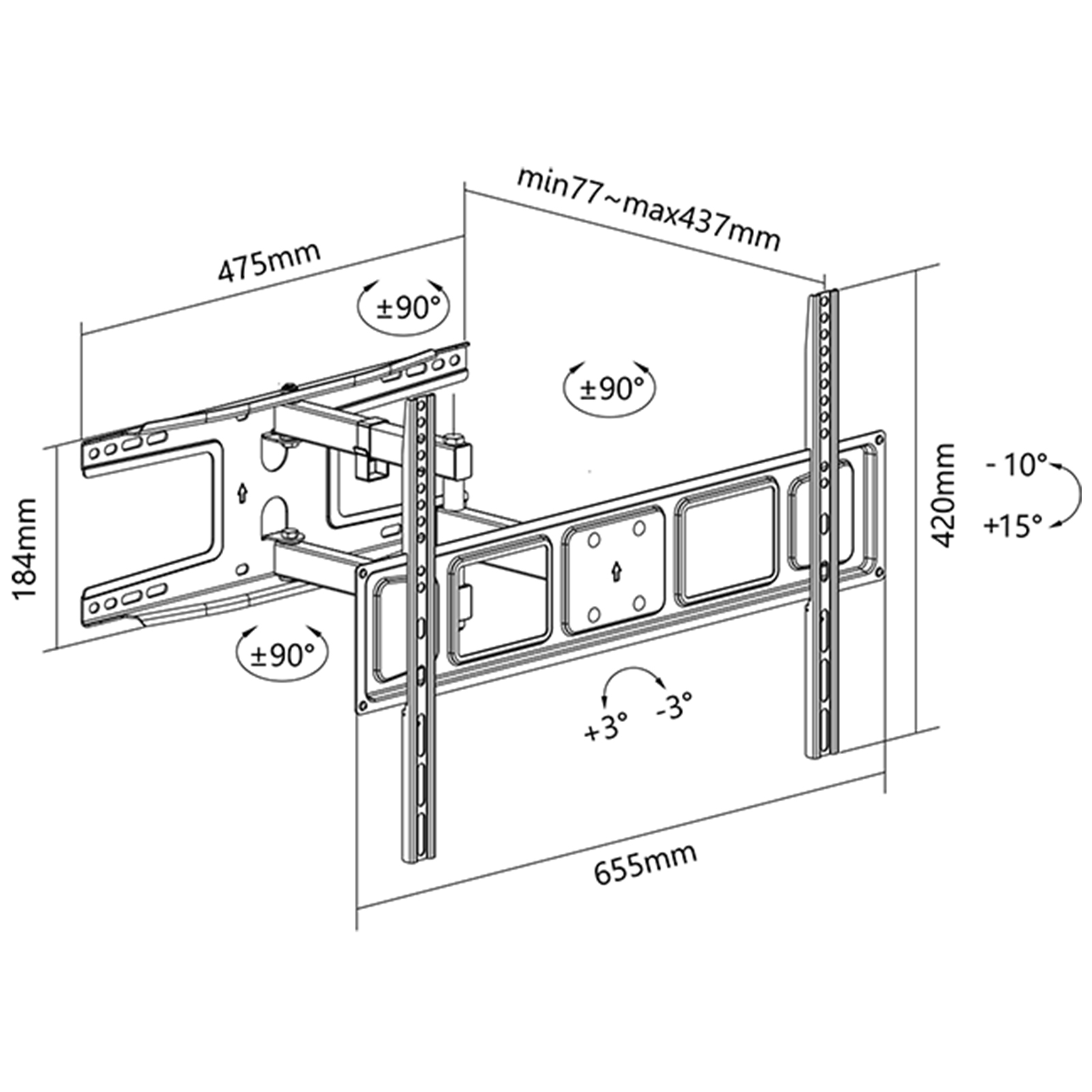 Supporto universale per FLAT-TV 30"-70" - Kg 35 - 2 bracci - 3 snodi