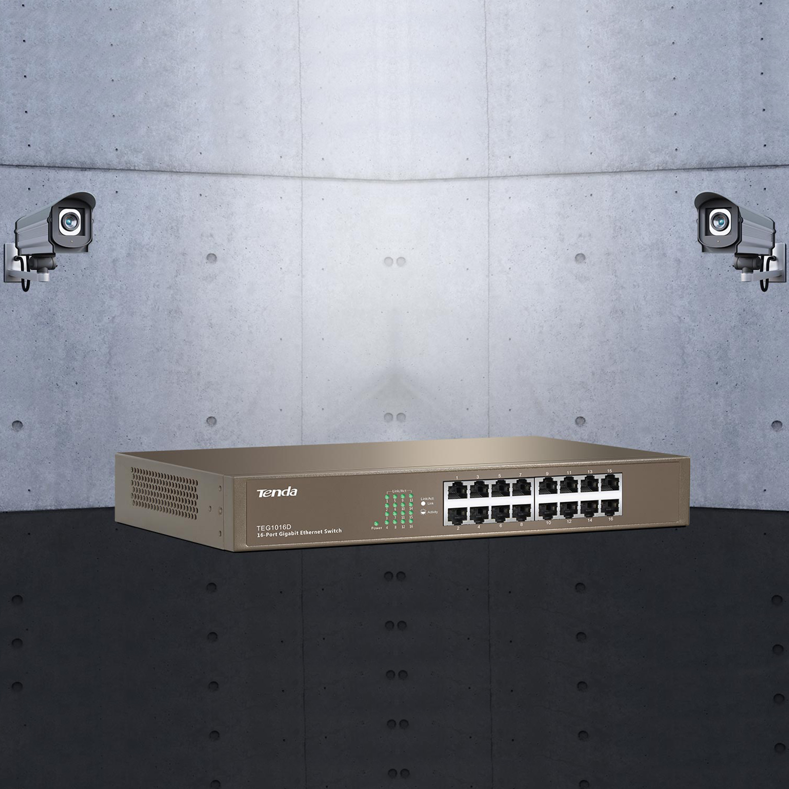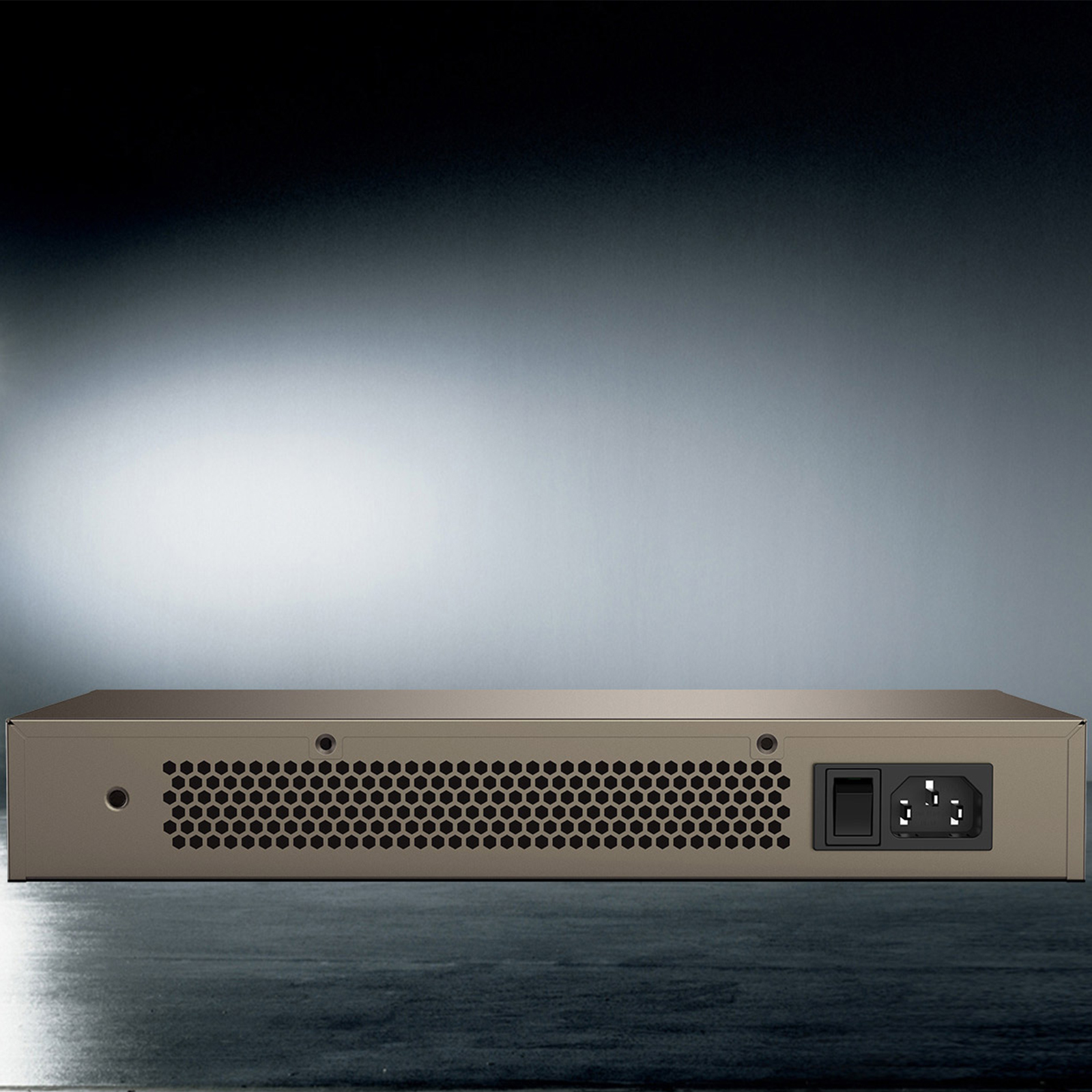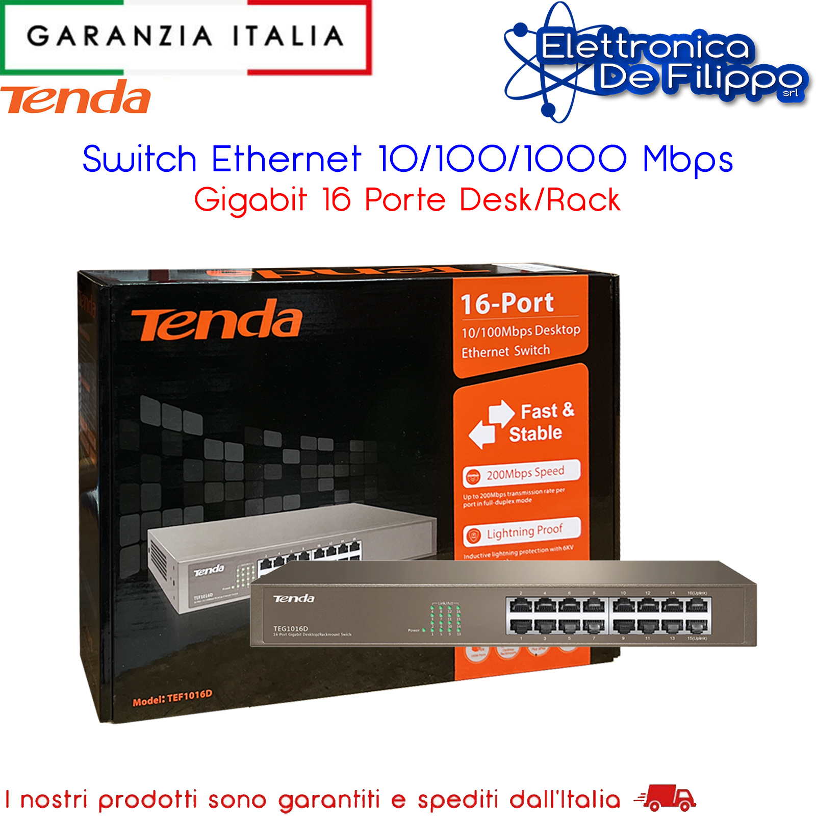 Switch 10/100/1000 Gigabit full duplex totalmente plug & play; Porte auto negozianti, compatibile con la modalità store & forward, per mantenere il segnale stabile anche su lunghe distanze. Scocca in metallo, montaggio a Rack 13" o appoggio.
