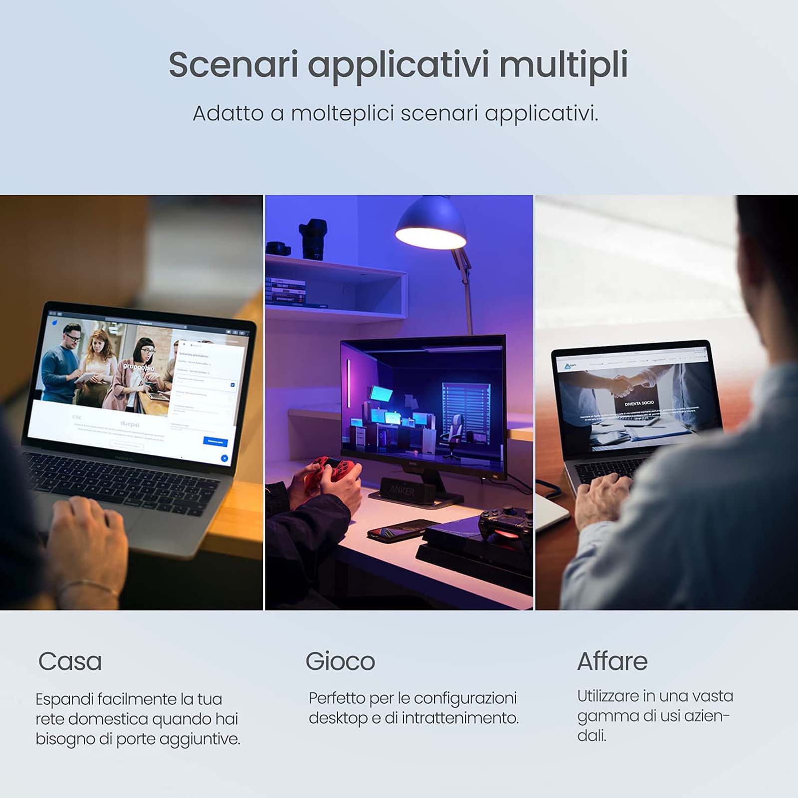 • Funzioni: Standard: lo switch funziona come uno switch non gestito e tutte le porte dello switch possono comunicare tra loro. Modalità di estensione: se la modalità di estensione è abilitata, le porte dalla 1 alla 4 saranno isolate (negoziazione automatica a 10 Mbps). La distanza di erogazione dell'alimentazione e dei dati di rete è fino a 250 metri (10 Mbps).