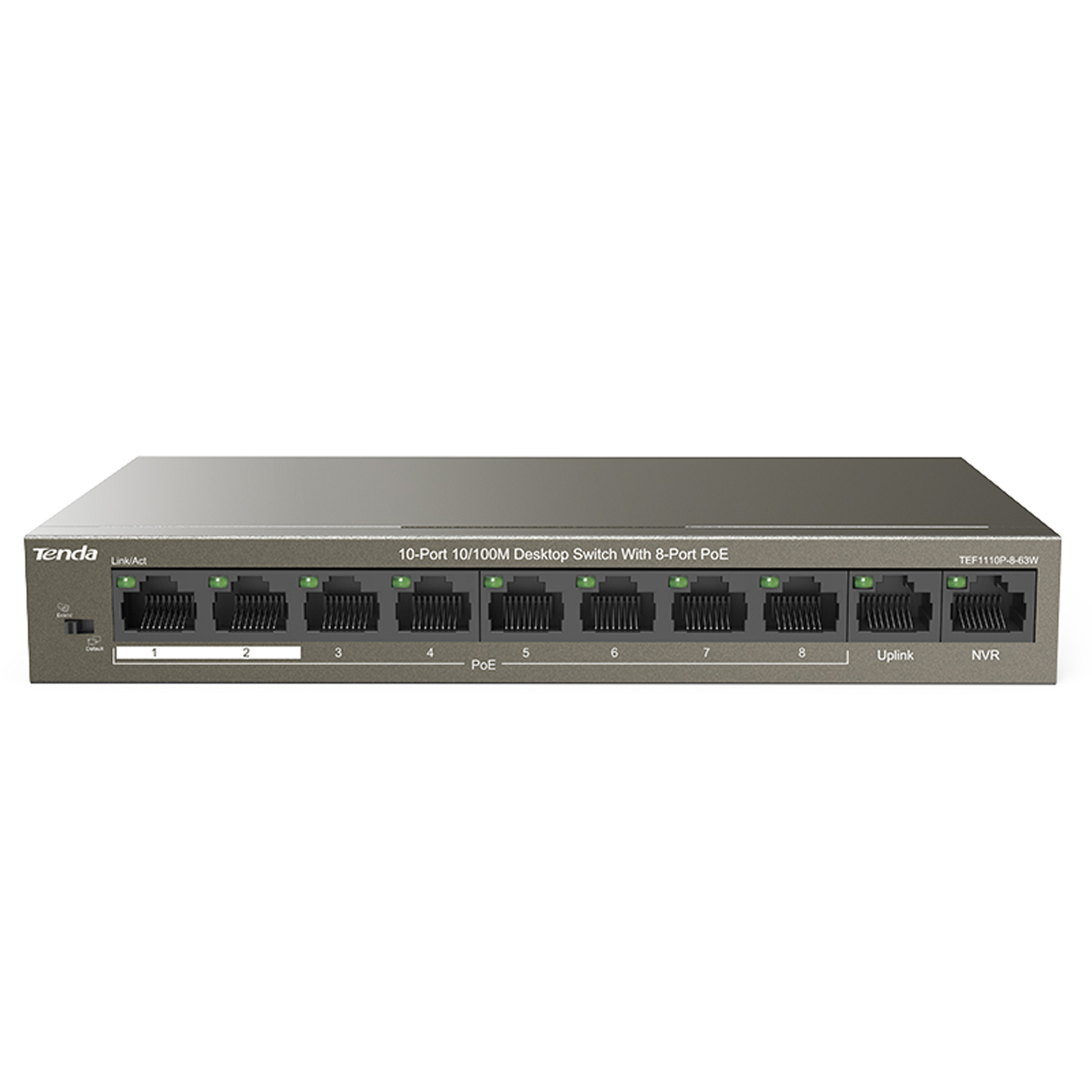 TEF1110P-8-63W è uno switch PoE non gestito con 2 porte uplink, progettato in modo indipendente da Tenda. Conforme agli standard IEEE 802.3at/af, è in grado di identificare in modo intelligente i dispositivi alimentati da PoE. Lo switch fornisce un'uscita di potenza PoE massima di 63 W e 30 W per una singola porta. Dotato di modalità estesa, VLAN One-key e funzioni QoS, TEF1110P-8-63W è la scelta ideale per PMI, supermercati e ristoranti con requisiti di videosorveglianza di piccole dimensioni.