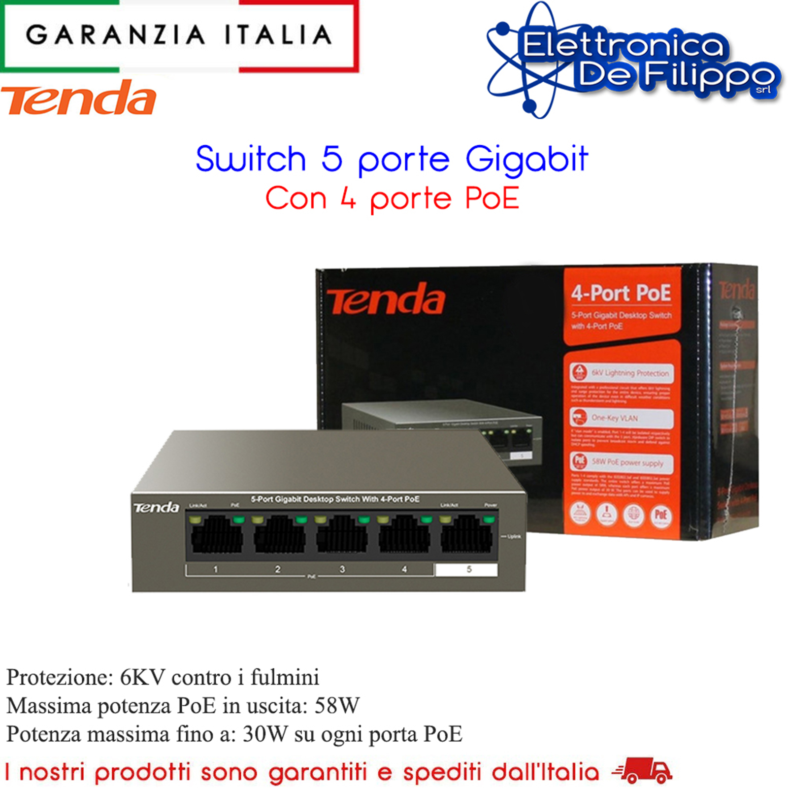Le porte 1-4 sono conformi agli standard di alimentazione IEEE802.3af e IEEE802.3at. L'intero switch offre una potenza di uscita PoE massima di 58W, mentre ciascuna porta offre una potenza di uscita PoE massima di 30W. Le porte possono essere utilizzate per fornire alimentazione e scambiare dati con Access Point e telecamere IP.