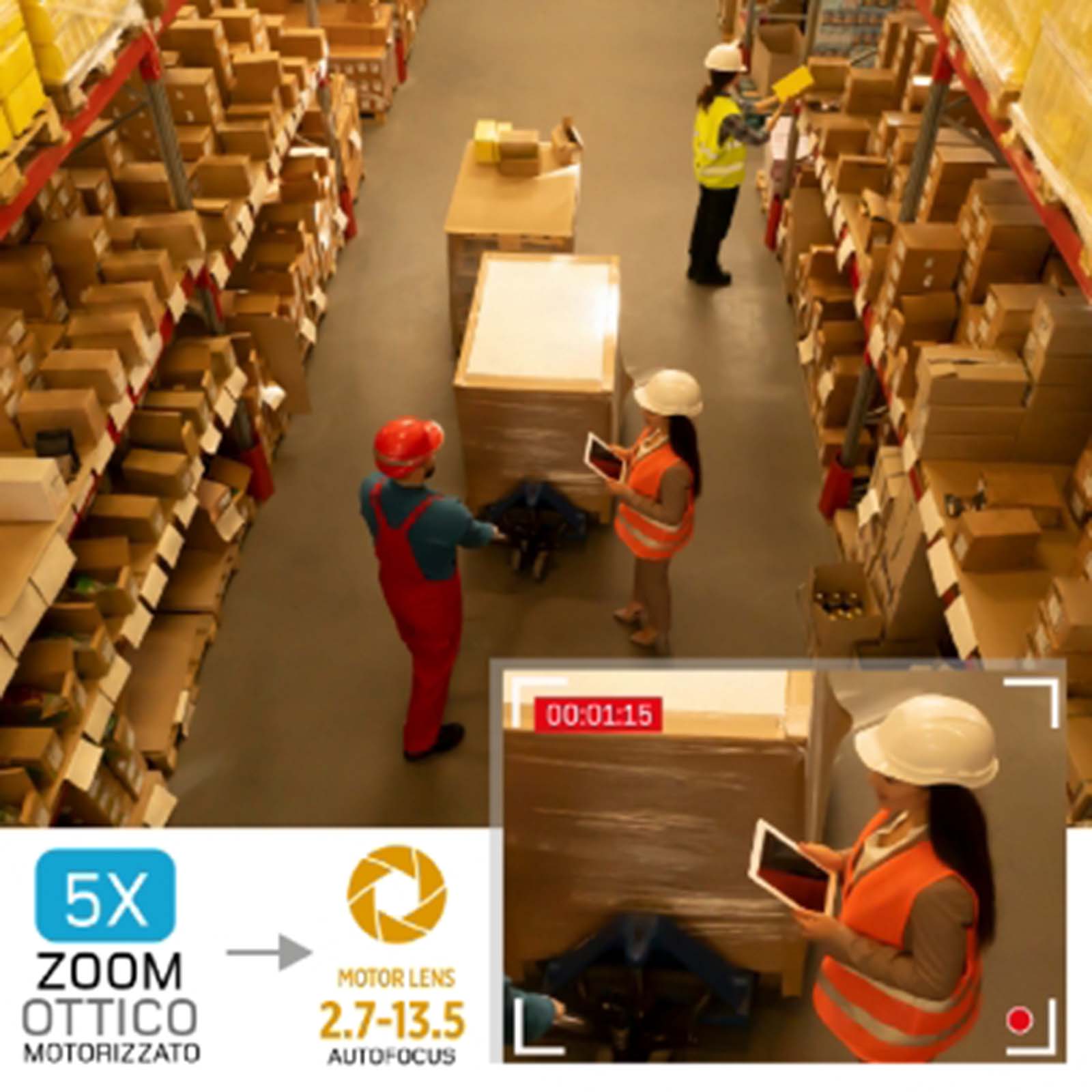 Telecamera A-HD 4in1 (AHD/TVI/CVI/CVBS) tipo Bullet con sensore da 5M 1/2.8" Sony Starvis CMOS e risoluzione video 3840x2160 pixel, ottica motorizzata con AF da 2,7-13,5mm e visione notturna fino a 40m tramite 4 IR LED. Struttura in metallo adatta anche in esterni. Alimentazione 12VDC 750mA e connessione BNC.