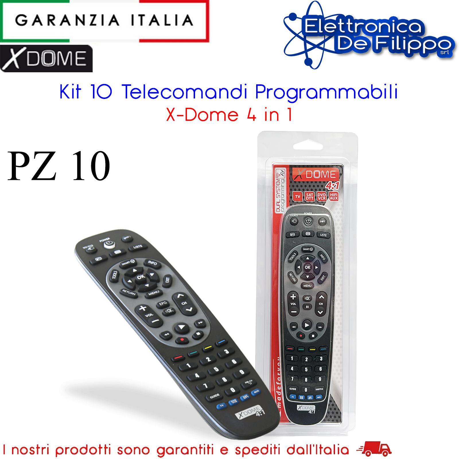 Telecomandi dual system programmabili per 4 apparecchi TV diversi con l'utilizzo del programmatore JL1970 venduto separatamente.