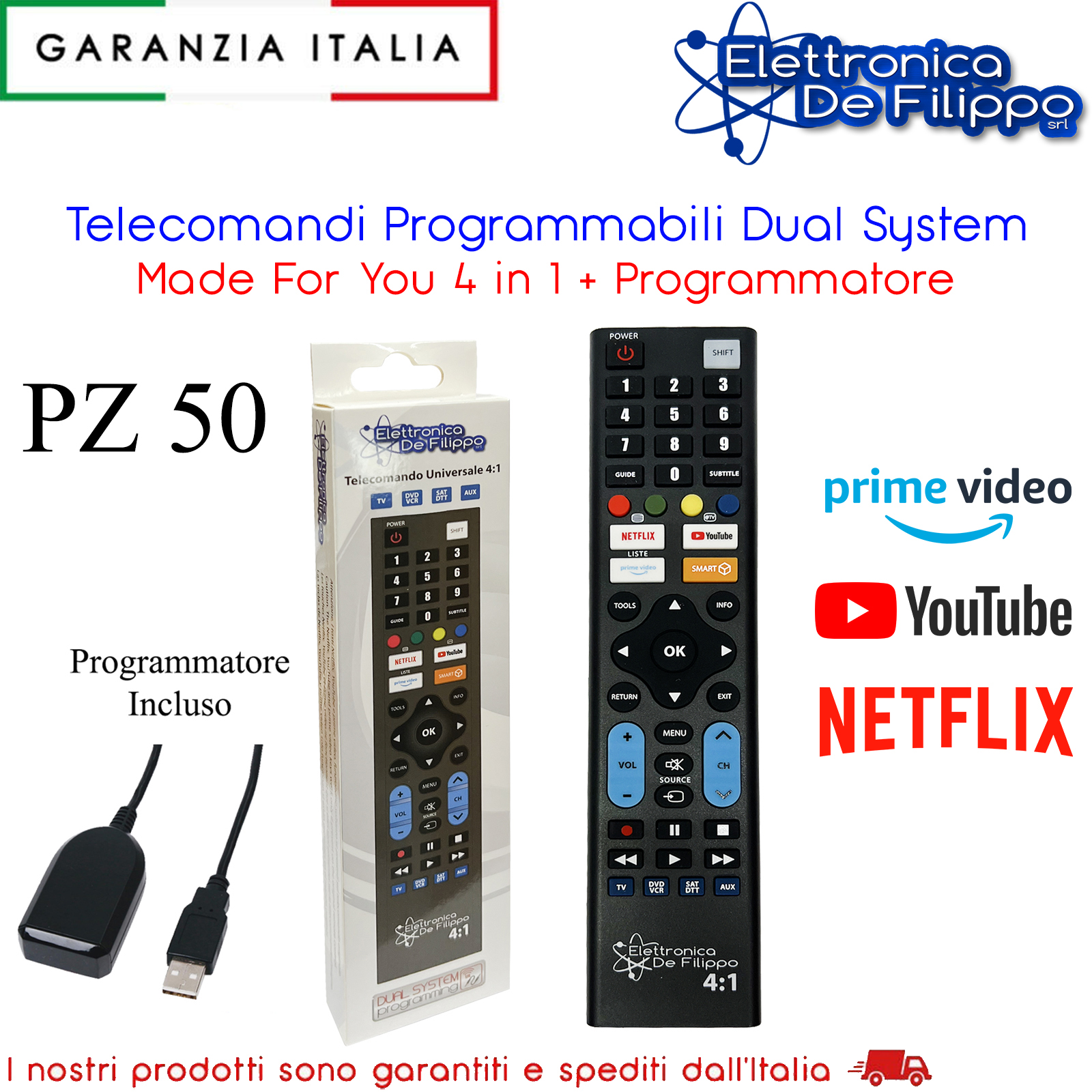 50 Telecomandi dual system programmabili per 4 apparecchi TV diversi con l'utilizzo del programmatore JL1970.