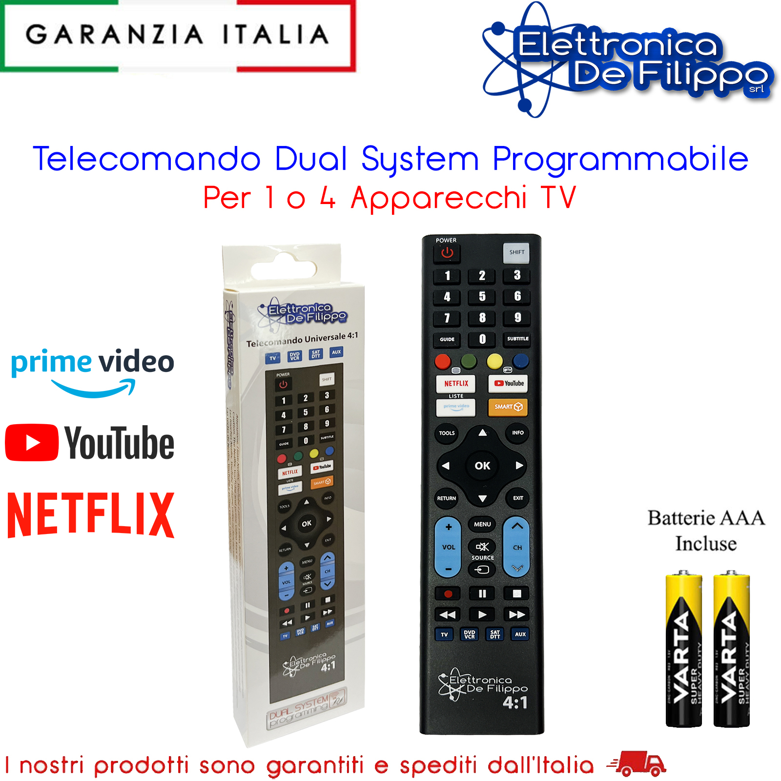 Telecomando dual system programmabili per 4 apparecchi TV diversi con l'utilizzo del programmatore JL1970 venduto separatamente.