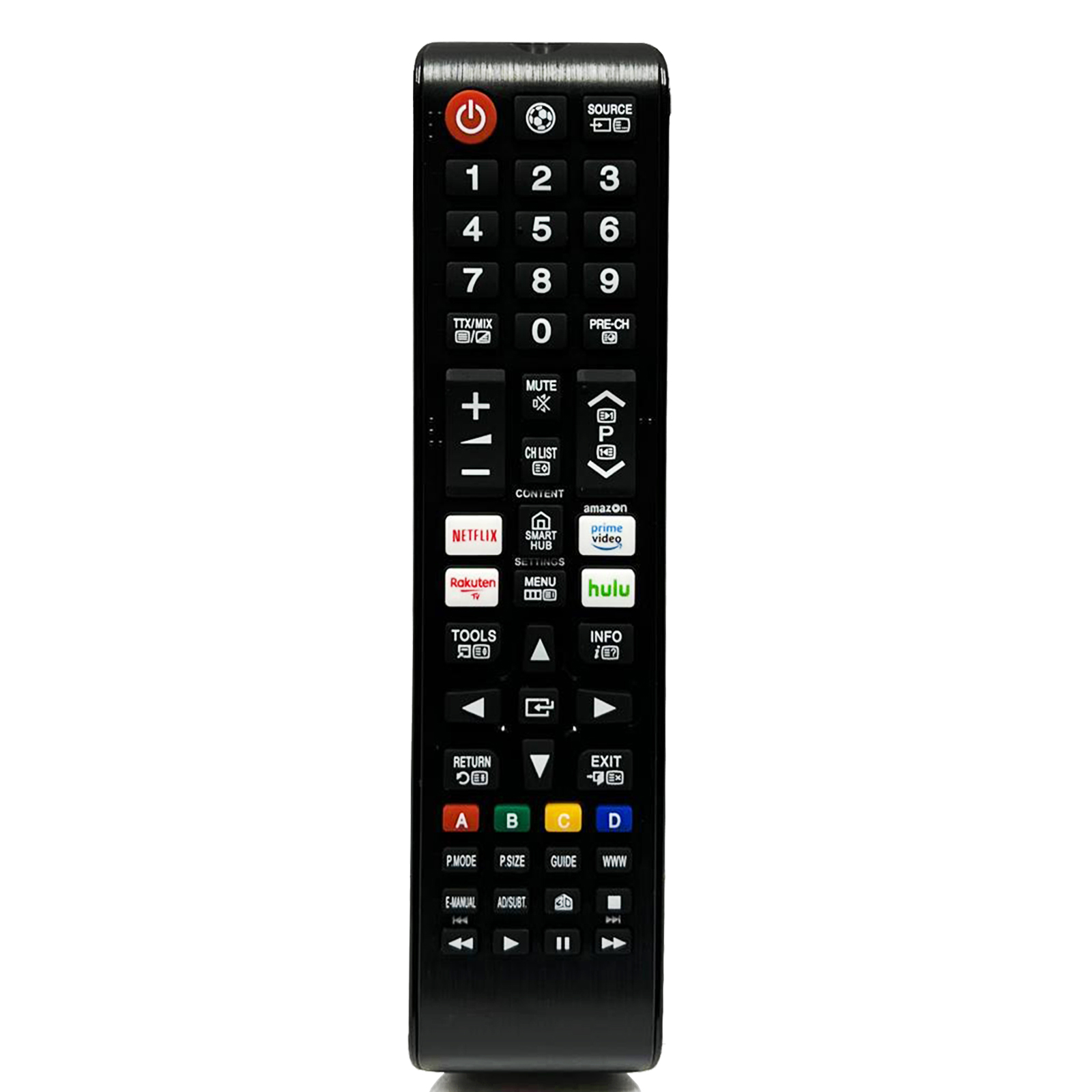 - Comanda tutte le funzioni, Netflix, Prime Video, Rakuten TV, Hulu, Menu, Av, Televideo, Colore