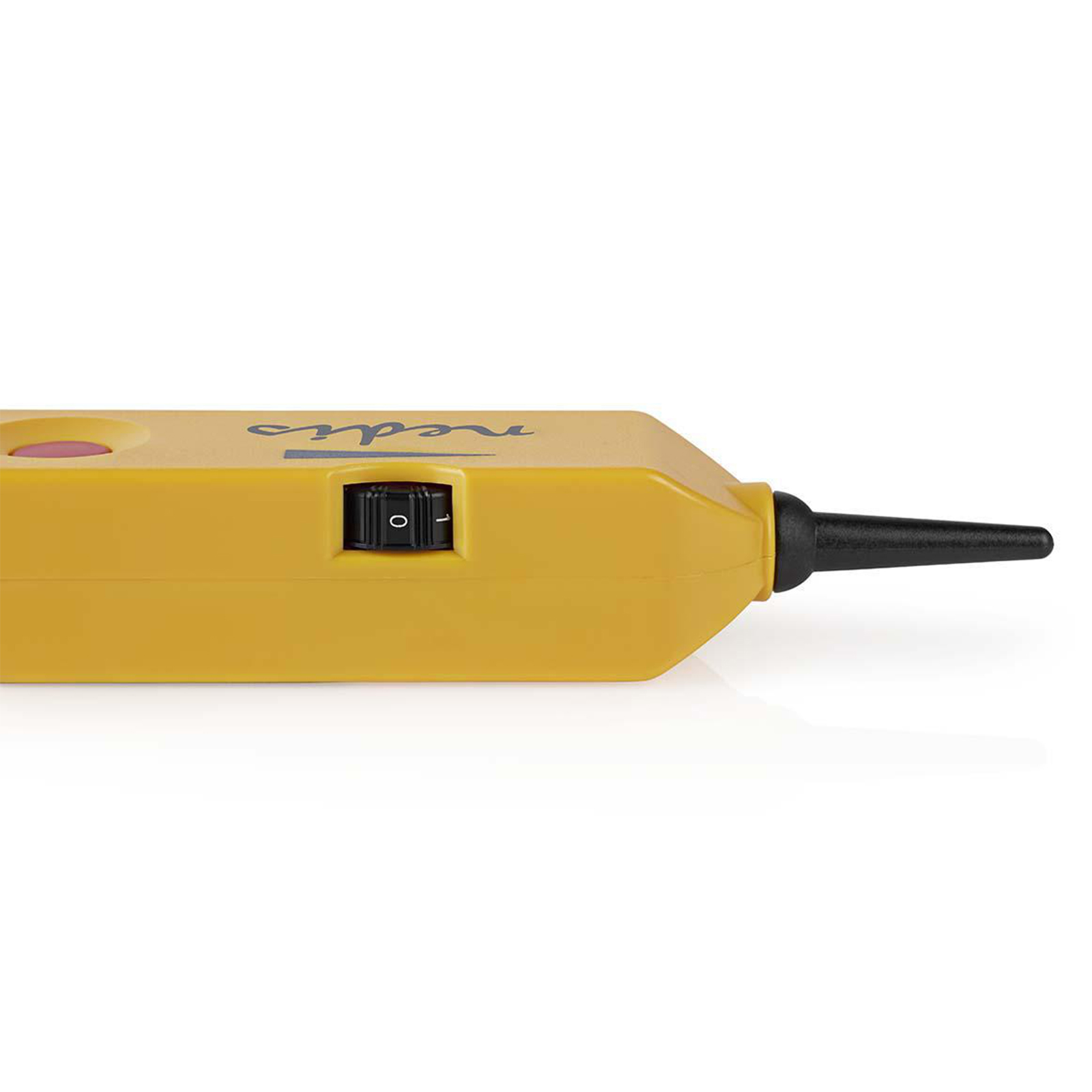 Questo generatore di toni con sonda amplificatore identifica e traccia fili o cavi all'interno di un gruppo senza danneggiare l'isolamento. Questo strumento è utile per l'installazione di reti e il controllo di oggetti. Il generatore di toni emette un singolo segnale o più segnali di frequenza e presenta due singole cartucce di prova e un giunto di prova 4 pin. Se i cavi sono legati e nascosti nella parete oppure sono integrati in una barriera mentre si utilizza il generatore di toni, è molto facile verificare con la sonda il segnale del tono che viene inviato dal telaio principale. La continuità di un filo, il guasto di un cavo, la polarità di un circuito o una rete oppure la tensione di lavoro di un cavo modulare possono essere tutti testati tramite questo tester di gruppo. Il percorso del circuito e il dettaglio della posizione possono essere valutati dalla luce pilota e dal tono dell'altoparlante.