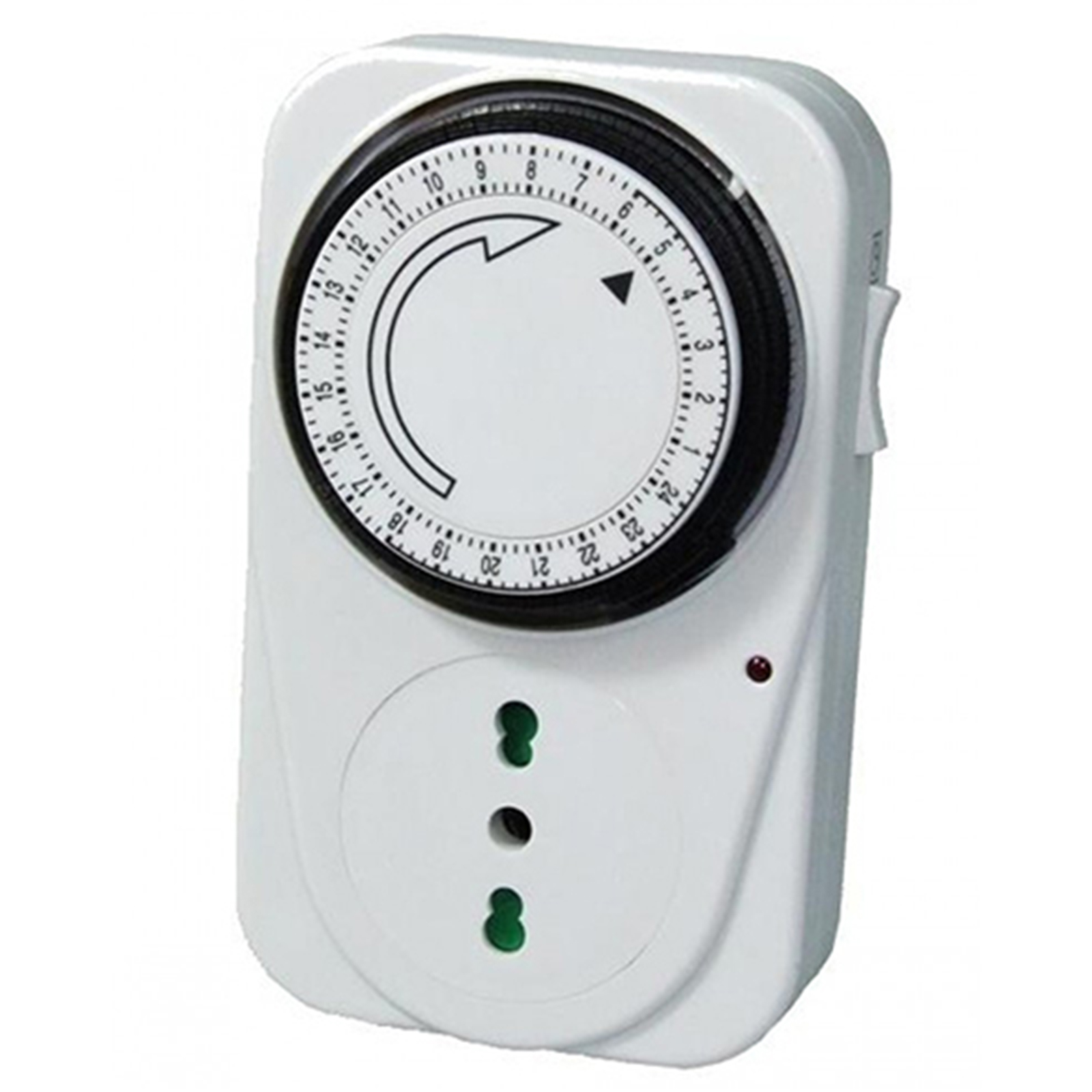 Timer meccanico giornaliero adatto per l’accensione e lo spegnimento di qualsiasi apparato collegato alla rete elettrica.