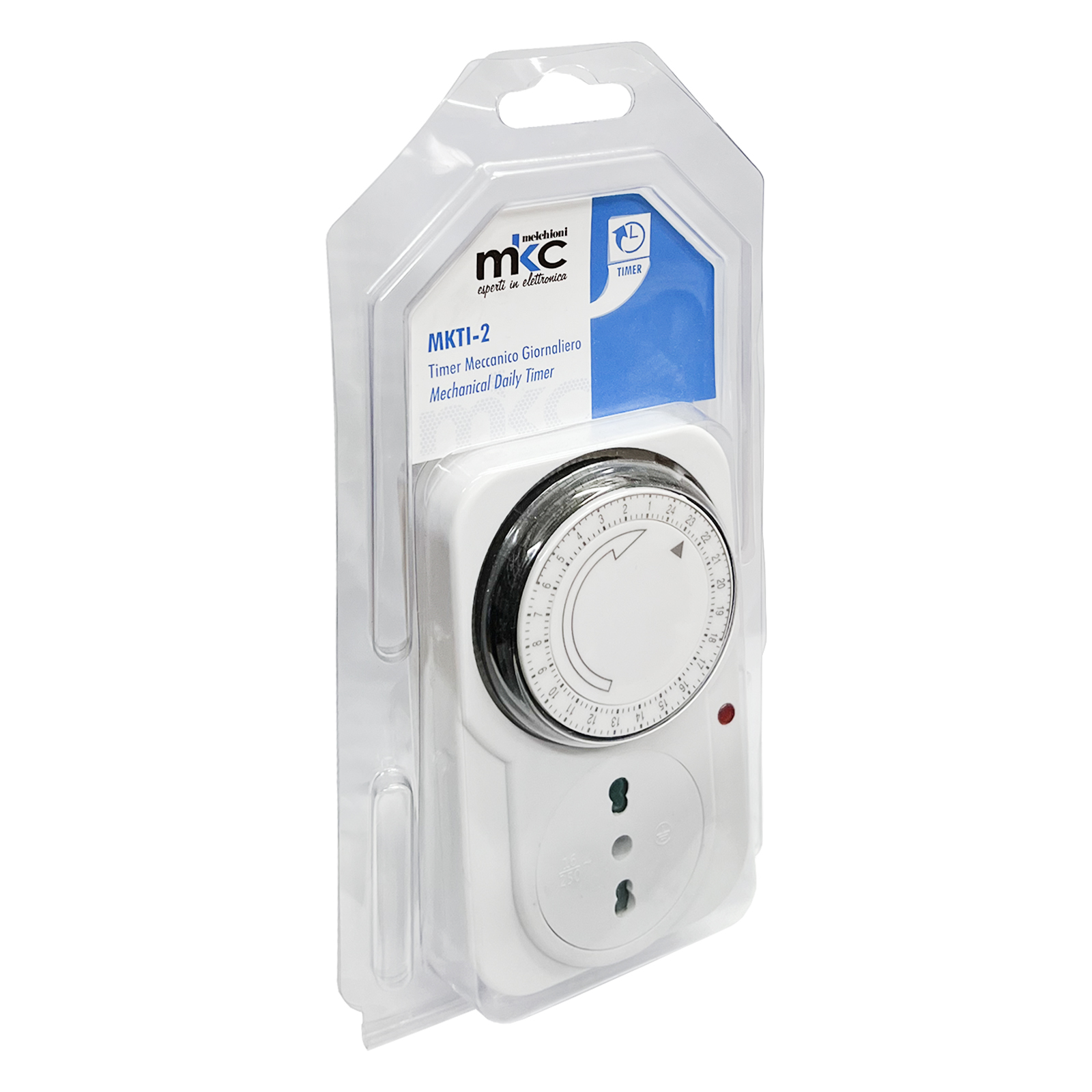 Timer meccanico giornaliero adatto per l’accensione e lo spegnimento di qualsiasi apparato collegato alla rete elettrica.