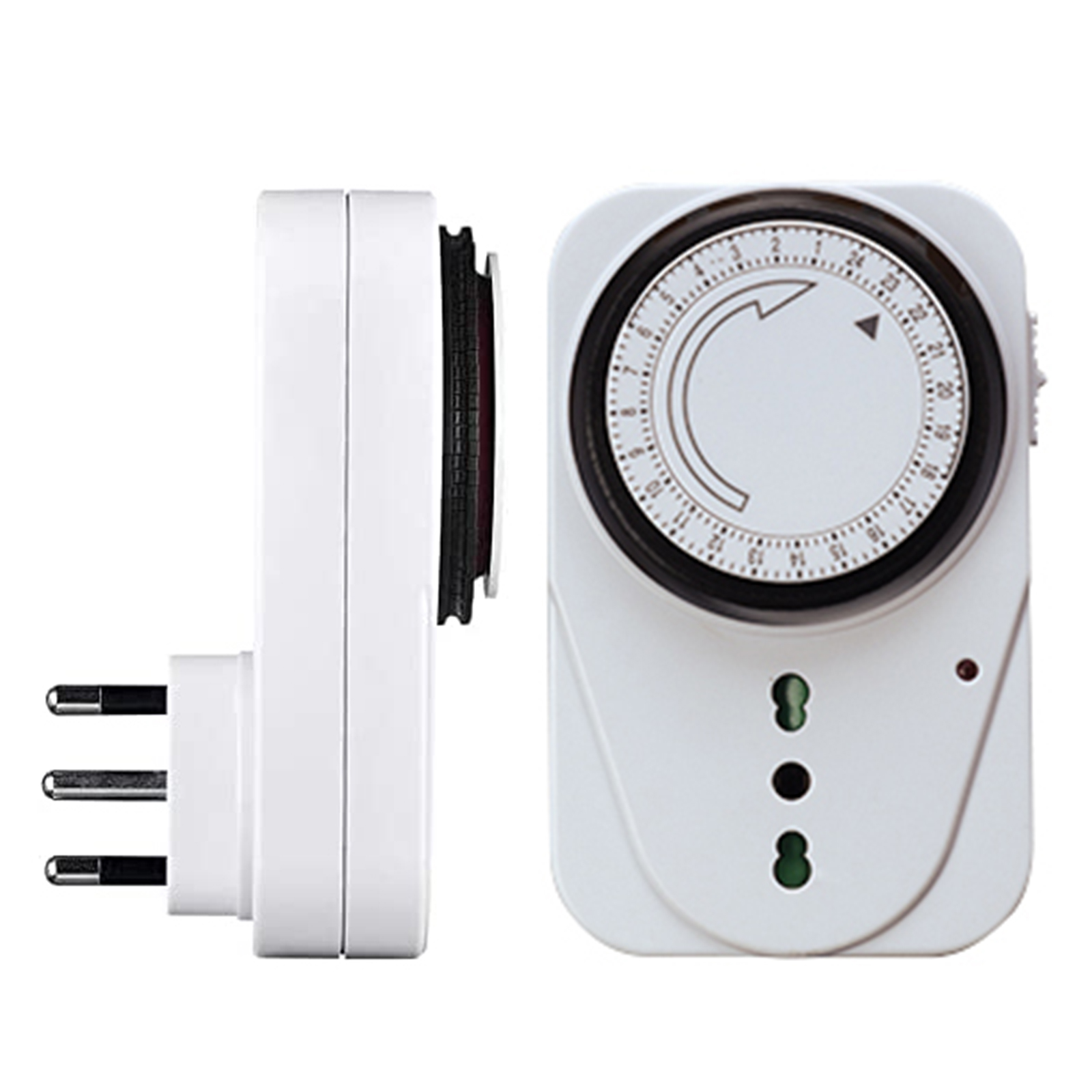 Timer meccanico giornaliero adatto per l’accensione e lo spegnimento di qualsiasi apparato collegato alla rete elettrica.