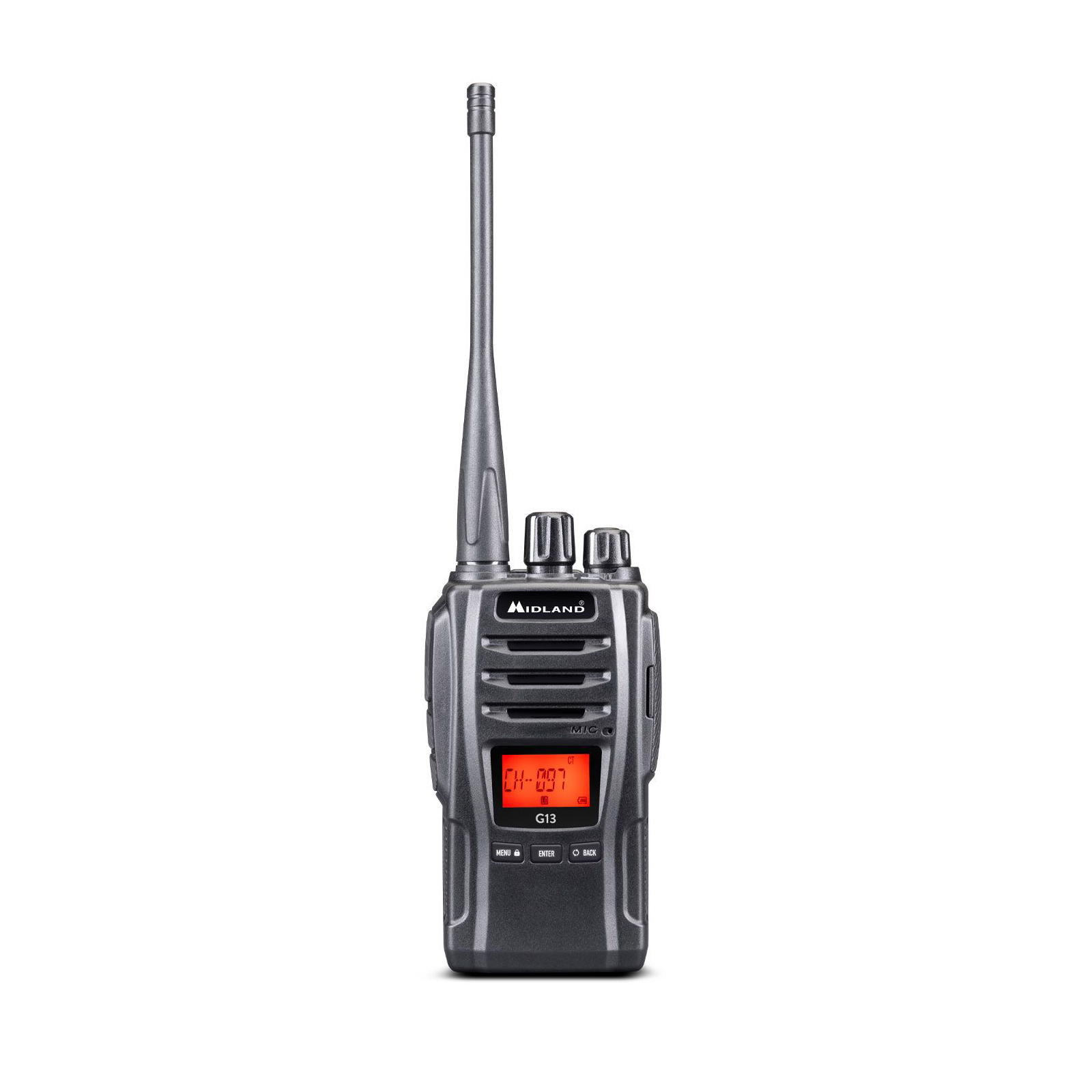 Chi pratica attivita? venatorie deve poter contare su una radio affidabile, versatile e dalla lunga durata. Se ti reputi un cacciatore esigenze e cerchi un walkie talkie capace di permetterti sempre di segnalare la tua presenza in zona di tiro... aggiungi al tuo equipaggiamento la nuova ricetrasmittente portatile G13. L’utente di riferimento chiede facilita? di utilizzo. G13 la raggiunge grazie a un layout comandi riconoscibile al tatto, un ampio display e le due manopole principali: la grande per il cambio canale la piccola per il controllo del volume e l’On/Off. Alla grande robustezza, permessa dallo chassis in alluminio, si aggiunge il grado di resistenza all’acqua IPX4. Valutando un ricetrasmettitore spesso ci si dimentica dell’audio... Non con il G13: Midland l’ha dotato di una risposta sonora dallo standard qualitativo ben sopra la media. La presenza della funzione RRM Channel (Rete Radio Montana) rende G13 un ottimo supporto anche per chi pratica escursionismo e trekking grazie alla possibilita? di selezionare in automatico la frequenza radio principale di Rete Radio Montana: strumento principe per segnalare emergenze. La batteria al Litio in dotazione offre una autonomia di utilizzo infinita ed il supporto di un circuito di ricarica rapida. G13 opera sulla gamma PMR446 (Personal Mobile Radio) frequenze 446.0-446.2 Mhz. Alle caratteristiche “pronto uso”, questo ricetrasmettitore aggiunge, via software, la possibilita? di programmare e personalizzare canali, attivare o meno funzionalita? specifiche.