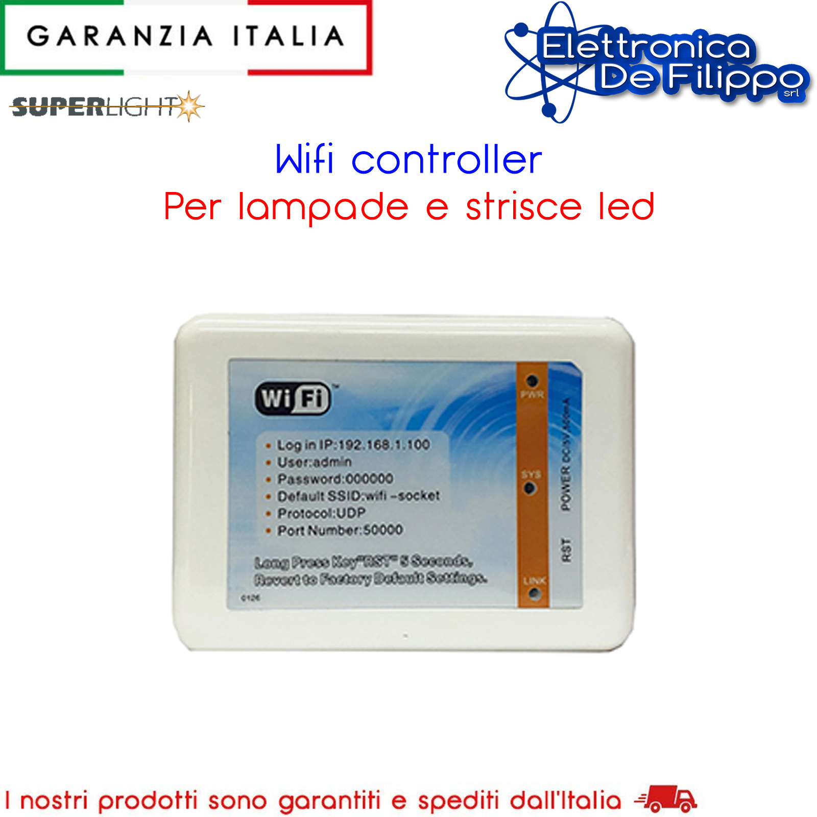 Applicazione mobile: Viene utilizzata un'applicazione dedicata per controllare il controller Wi-Fi e le luci collegate. Questa app può offrire varie funzionalità come la regolazione del colore, dell'intensità luminosa, la programmazione degli orari di accensione e spegnimento, e la creazione di scene personalizzate.